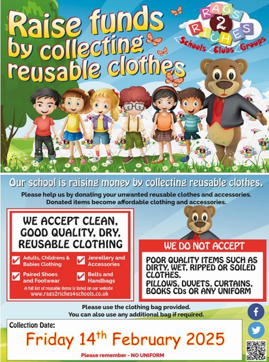 Our Collection date is Friday 14th February. Please leave your donations with the team in the school office or the class teacher.
